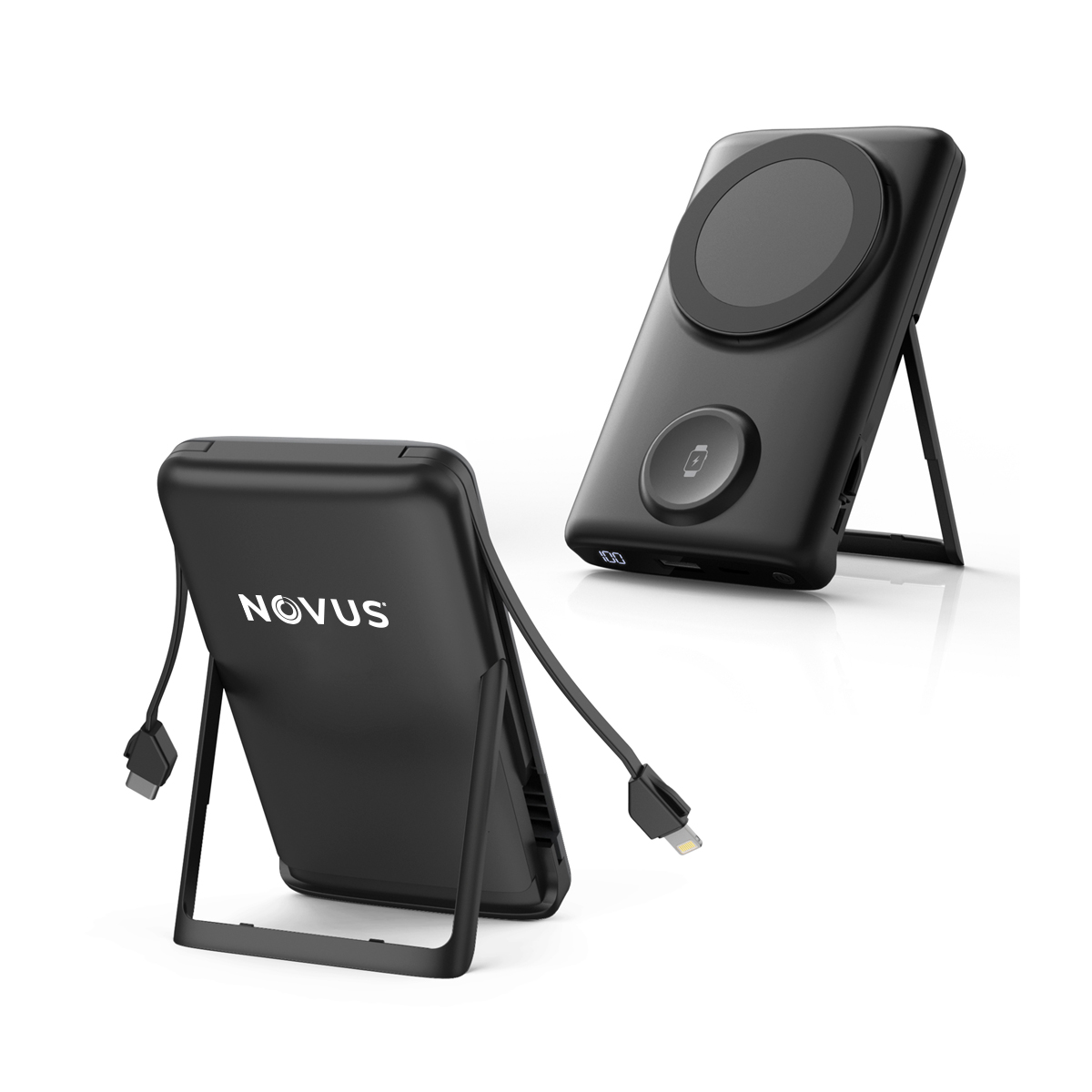 Meet the Avalon, the first 10,000 mAh light up MagSafe 5-in-1 portable charger in the promo industry with Apple and Samsung smartwatch charging capabilities. This compact powerhouse also offers wireless phone charging at 15W max for fast, reliable power. Featuring built-in Type-C and Lightning cables, along with Type-C (In/Out) and USB (Out) ports, and phone stand, the Avalon provides unmatched compatibility and convenience. Whether for travel or daily use, the Avalon keeps your Apple and Samsung phones and watches powered and ready to go, setting a new standard in versatility.