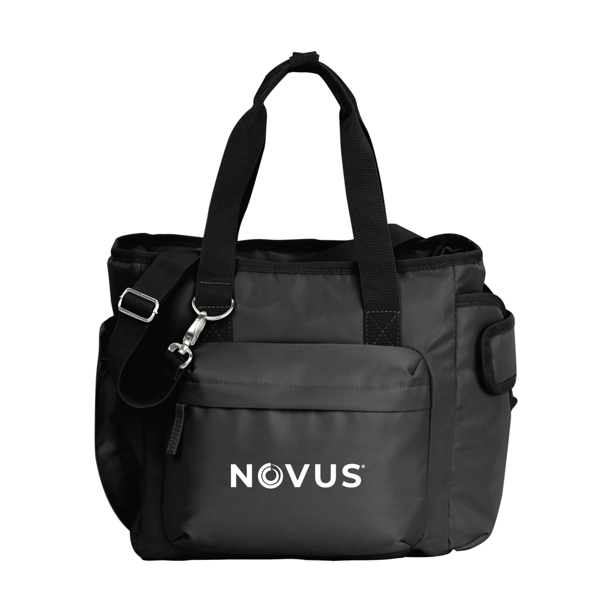 The Daybreak 16 Can Cooler features a unique exterior pocket designed to fit all drinkware, including 40oz travel tumblers with handles! Simply slide your favorite travel tumbler into the side pocket and secure it in place with the built-in hook-and-loop strap. The zip-top opening allows easy access to the items inside while the zippered front pocket provides additional storage. The adjustable crossbody strap is easily removed when not in use and the sturdy carry handles snap together for comfortable carrying.